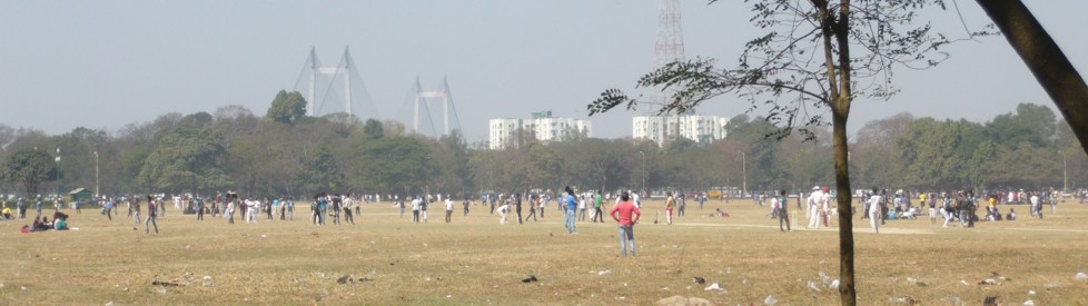 Image: cricket matches in progress on the Maidan, Kolkata.