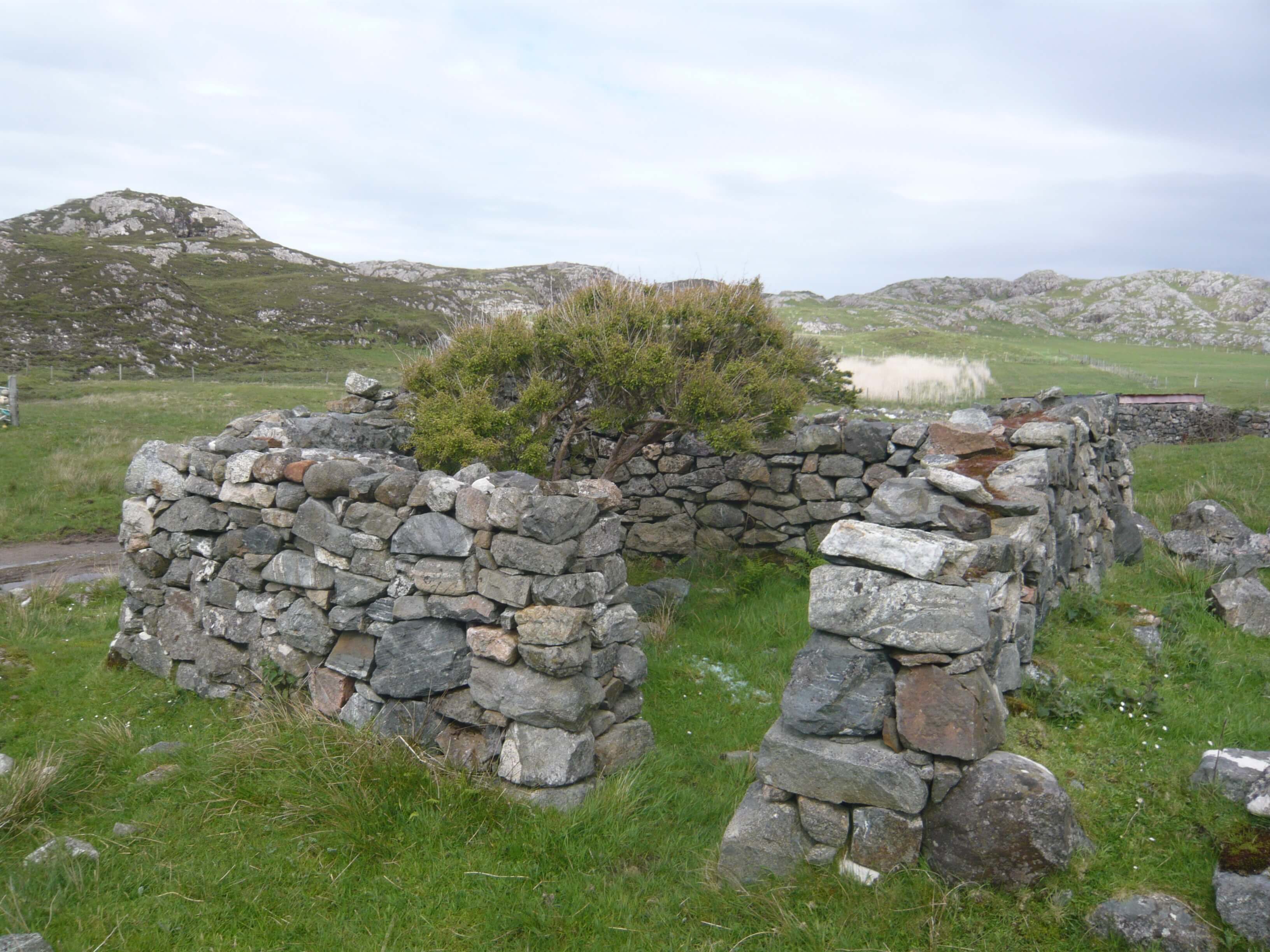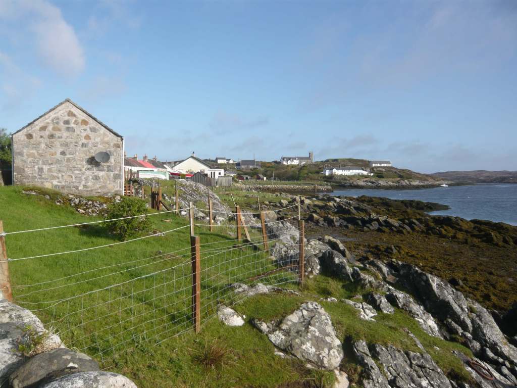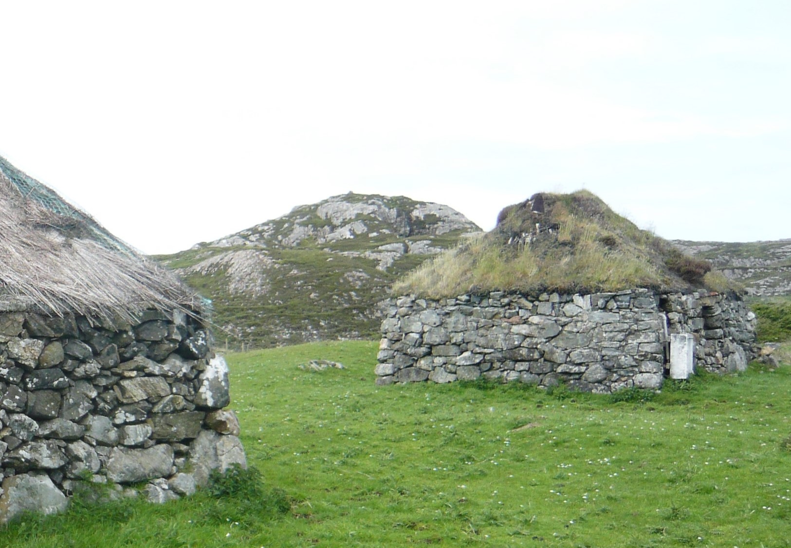 Sorisdale is a former crofting and fishing village at the north east end of the island. There are a couple of modern houses there, but also a number of old cottages with turf or thatched roofs, in various states of repair or disrepair.