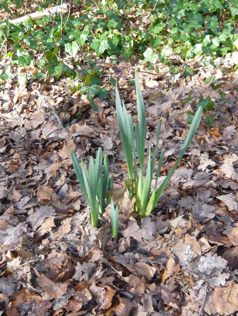 There were some wild daffodils coming up in the woods. Not in flower yet, but it shouldn’t be long.